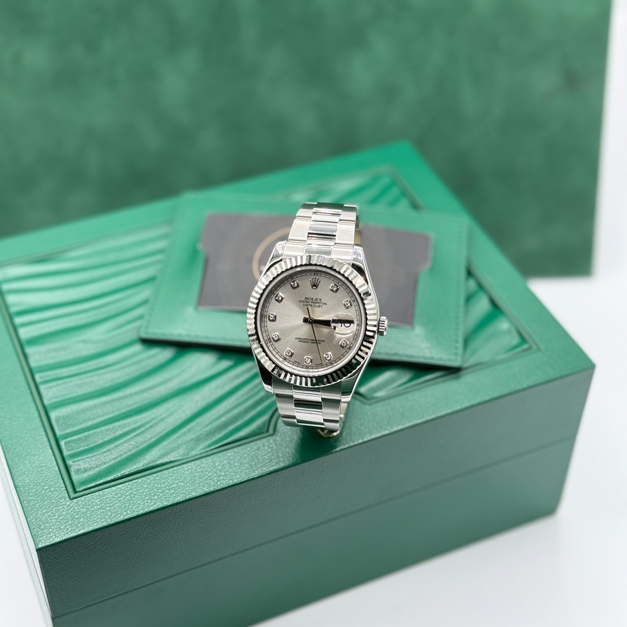 Rolex Datejust 2 (41mm) Silver Diamond Dial Model: 116334 Box & Papers 2011